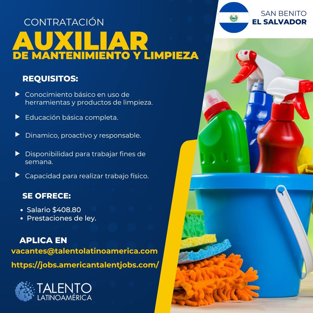 Auxilia de Mantenimiento y Limpieza – San Benito, San Salvador